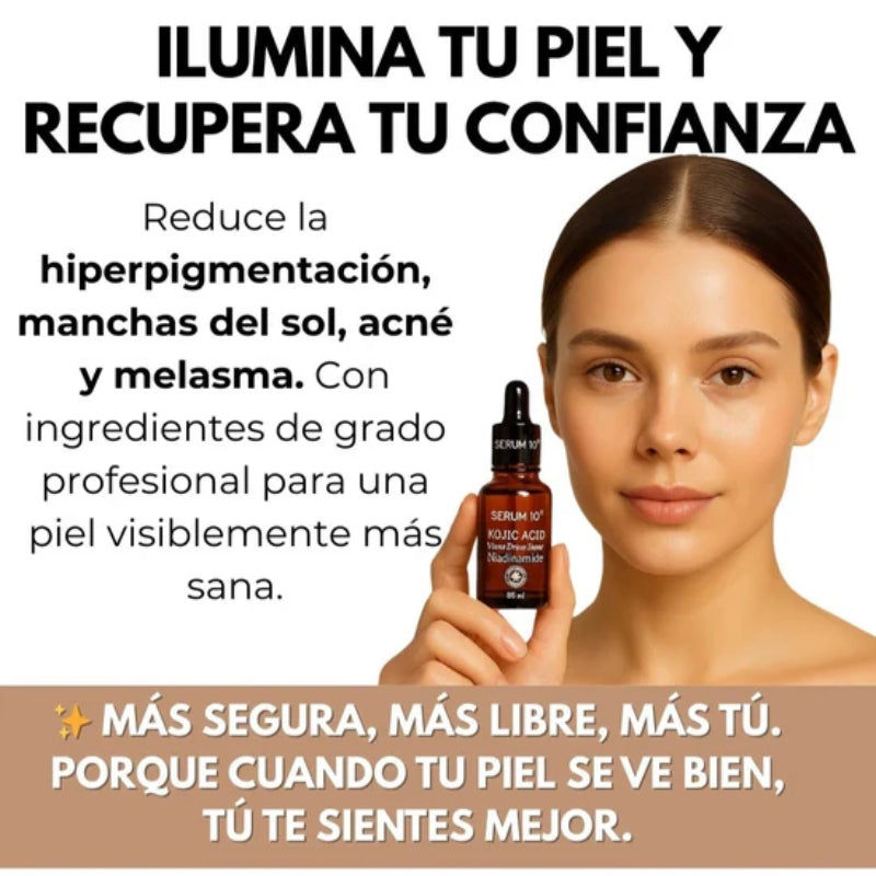 Dejá que tu piel hable por vos. Con el uso constante, notarás cómo tu rostro se ve más limpio, parejo y luminoso sin necesidad de cubrirlo. Kojico Serm 10 te ayuda a recuperar la confianza, realzando tu belleza natural y dejando una piel que simplemente irradia salud.